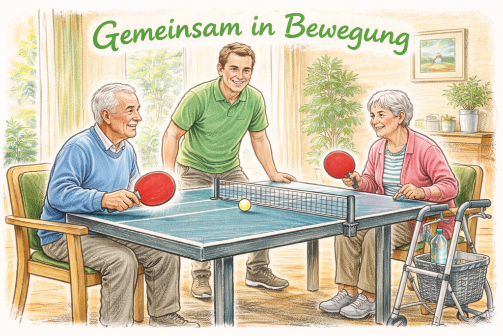 In einer gemischten Gruppe können wir mit dem Partner, Pfleger, Trainer, Betroffenen oder Kindern aus der Abteilung Tischtennis spielen.